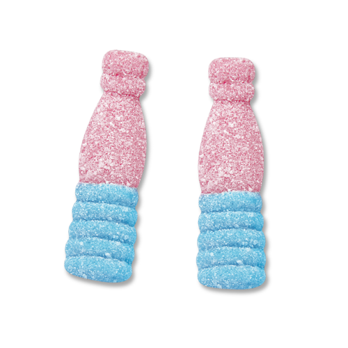 • La fameuse bouteille rose et bleue qui pétille avec un surprenant goût de bubble gum depuis 1993 !
