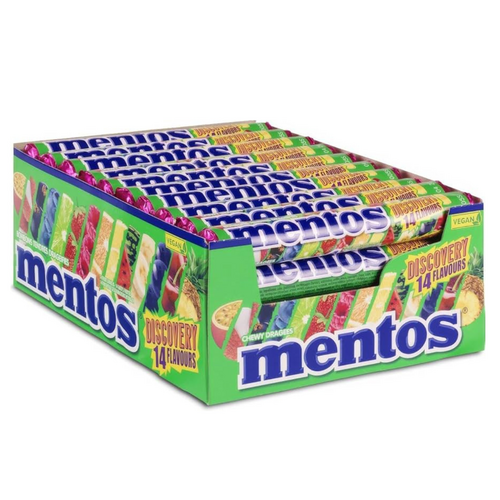 Depuis sa création en 1932, le bonbon Mentos a traversé les mers et conquis les palais du monde entier. Que ce soit à la menthe, aux parfums fruités, ou à la réglisse, les bonbons Mentos plaisent aux petits comme aux grands, et adoucissent les moeurs grâce à leurs rouleaux à partager en toutes occasions.