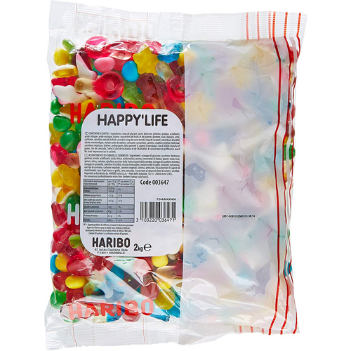 | Conditionnement : | Sac plastique ou film scellé contenant 2 kg de bonbons Happy Life |