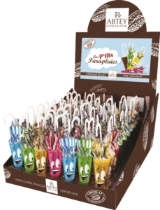Ajoutez une touche ludique à vos événements avec les parapluies au chocolat au lait. Présentés en boîte de 70 pièces, ces chocolats gourmands séduisent par leur design amusant et leur goût onctueux. Idéal pour les fêtes, anniversaires ou petits plaisirs au quotidien !