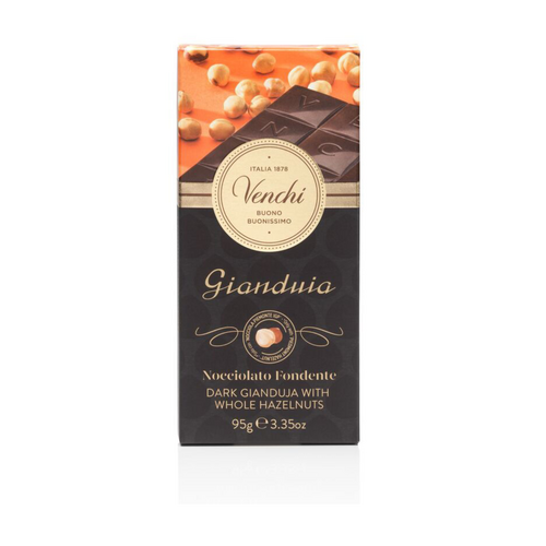 La Tablette Gianduia Noir et Noisettes est parfaite pour ceux qui aiment la douceur du Gianduja mais qui veulent se laisser surprendre par le croquant de la noisette du Piémont IGP entière. Parfait contraste entre crémeux et croquant, cette tablette vous surprendra par son goût intense de Gianduja au chocolat noir et de noisettes. Qu’attendez-vous pour la goûter ?